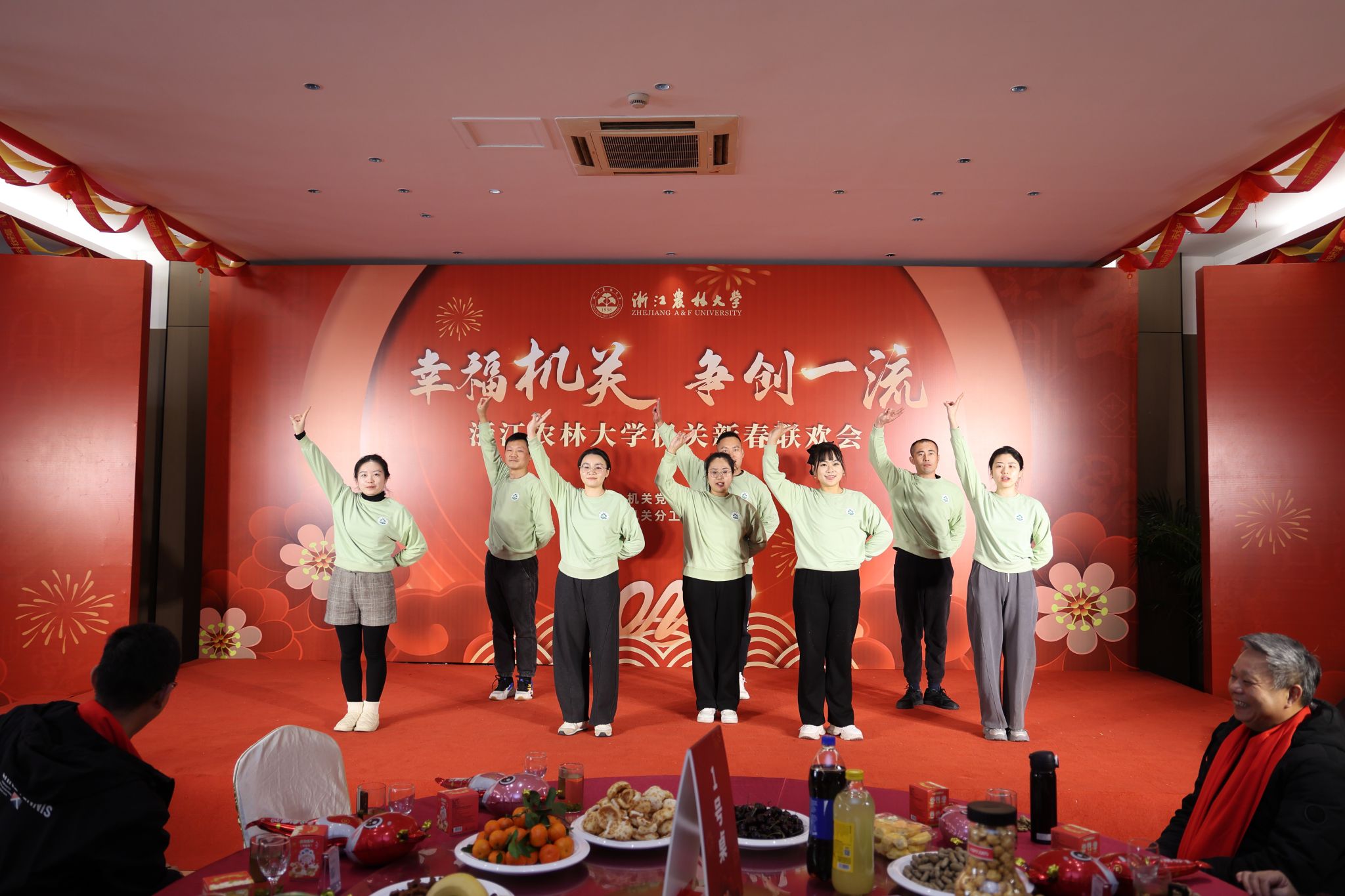 機(jī)關(guān)老師們演出的節(jié)目精彩紛呈,從多方面展現(xiàn)了浙農(nóng)林大機(jī)關(guān)人的精神風(fēng)貌。《上春山》等歌舞表演句句暖心,聲聲動(dòng)情;創(chuàng)意舞蹈《歡聚一堂》趣味十足,別出心裁;“因?yàn)槲覀兪且患胰耍嘤H相愛的一家人”熟悉的音符一響起,臺(tái)下觀眾情不自禁和臺(tái)上演員一起合唱,把聯(lián)歡會(huì)推向高潮。歲月更迭,初心依舊;新歲序開,共赴新程。大家表示,此次聯(lián)歡不僅是對(duì)過去一年辛勤工作的總結(jié),更是對(duì)未來一年美好憧憬的展望。大家在新的征程中必將繼續(xù)努力,再創(chuàng)佳績(jī)。