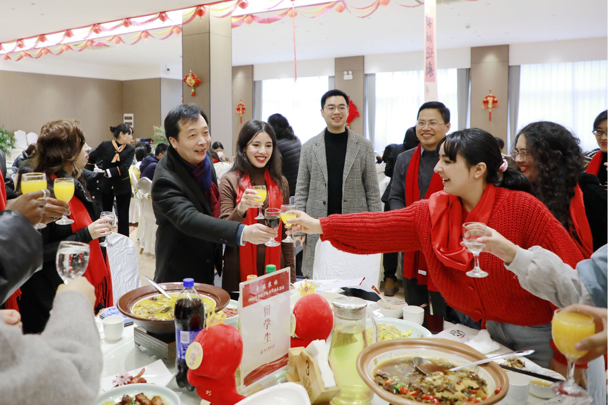 校辦、學(xué)工部、研工部、國教學(xué)院等相關(guān)單位負(fù)責(zé)人陪同慰問,并參加團(tuán)拜活動。