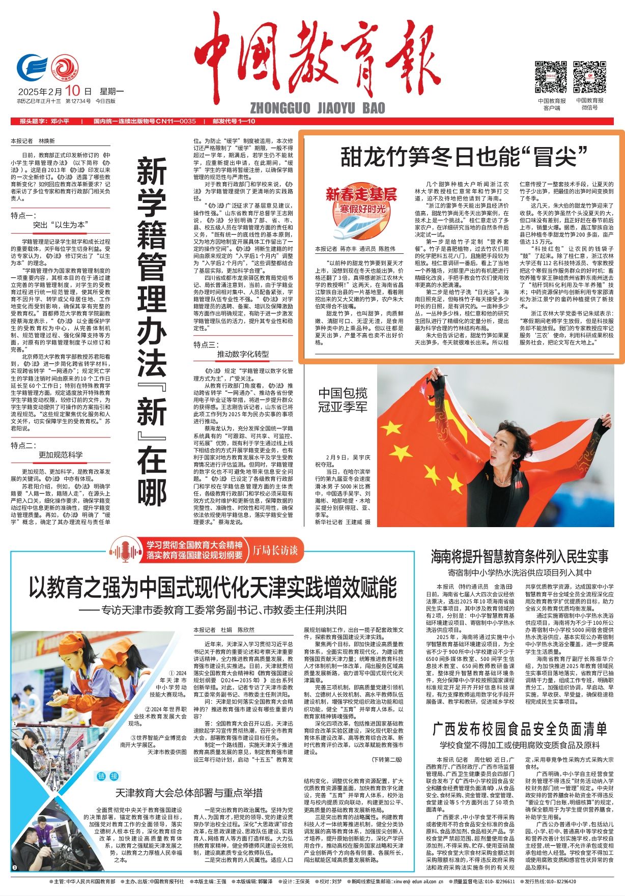 2月10日,《中國教育報》頭版以《甜龍竹筍冬日也能“冒尖”》為題,報道我校科技特派員深入海南省昌江黎族自治縣,利用科研成果幫助農戶提高竹筍產量,點贊科技特派員們利用寒假服務“三農”、服務社會,助力農民的錢袋子“鼓”起來。