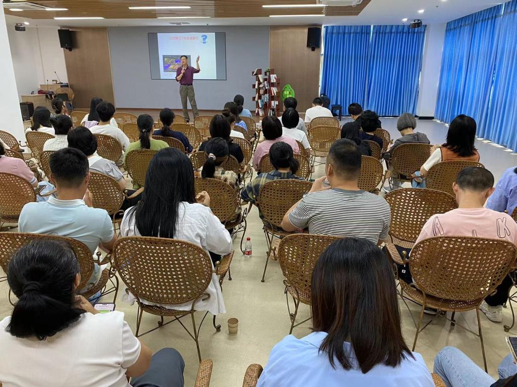 授牌儀式后,舉辦了以“增強心動能、健康伴我行”為主題的教師“思享薈”活動。浙江財經大學教授、國家二級心理咨詢師白羽作了題為《釋放壓力,提升幸福感——教師壓力自我調節》的報告,帶領大家重新認知壓力,全面解讀了開展有效壓力管理的策略,重點介紹了認知調節、行為調節、情緒調節、生活調節四方面“與壓力共舞”的技巧。老師們在現場體驗了經穴敲擊放松法、身體掃描放松法、冥想放松法等釋放壓力的方法,紛紛表示收獲頗多,今后將更加理性應對各種壓力,以積極健康的心態感知美好、感受幸福,擁抱更加快樂的自己。