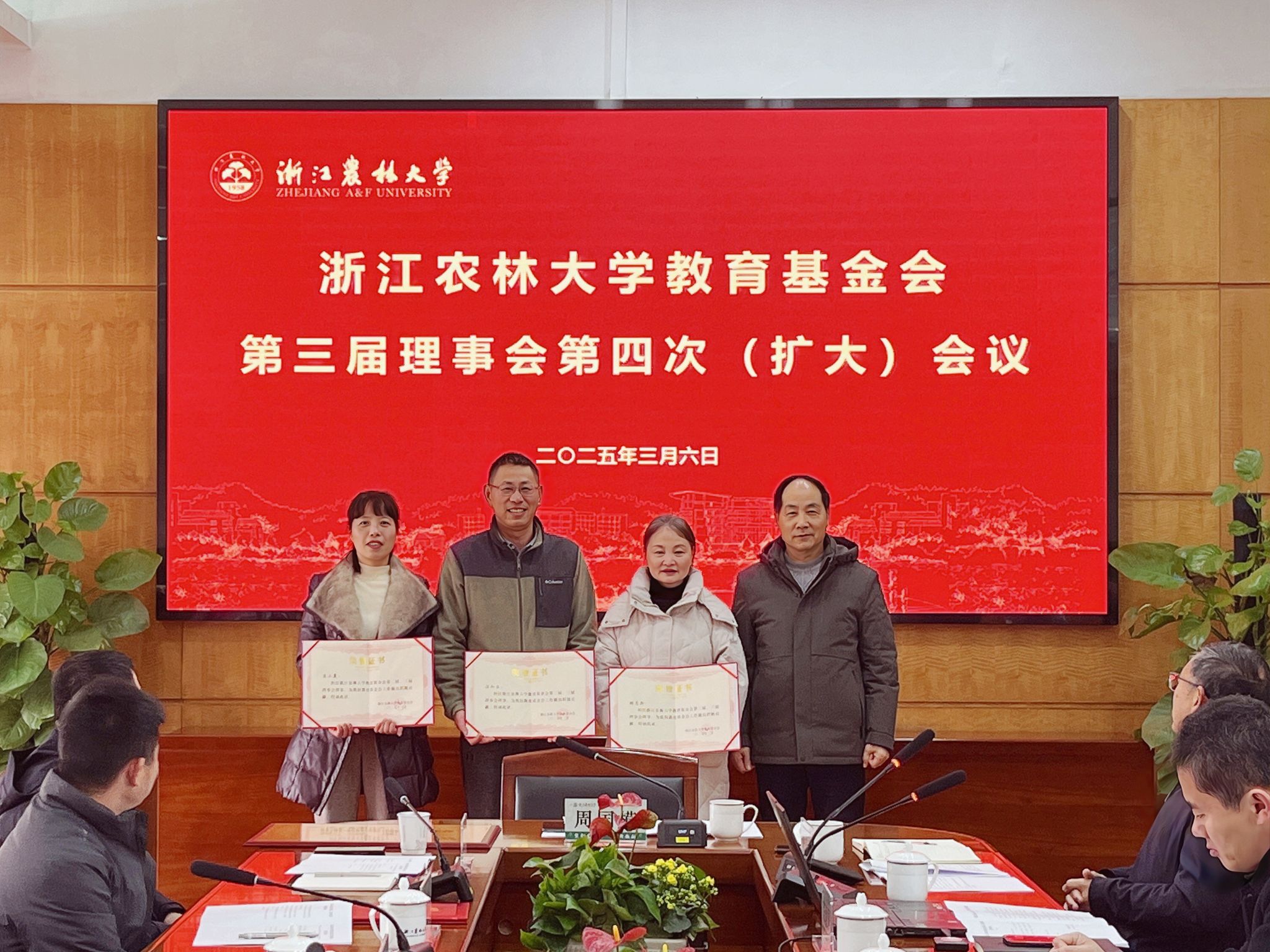會上,基金會秘書長介紹了2024年工作總結(jié)和2025年目標(biāo)任務(wù)。會議對理事會、監(jiān)事會部分成員進(jìn)行了調(diào)整,為感謝卸任理事做出的積極貢獻(xiàn),周國模代表基金會向卸任理事頒發(fā)榮譽證書。會議表彰了“校友與基金會工作先進(jìn)集體和先進(jìn)個人”,周國模頒發(fā)獎牌、榮譽證書。與會理事審議通過了《浙江農(nóng)林大學(xué)教育基金會黨支部黨建工作制度》等六項管理制度。