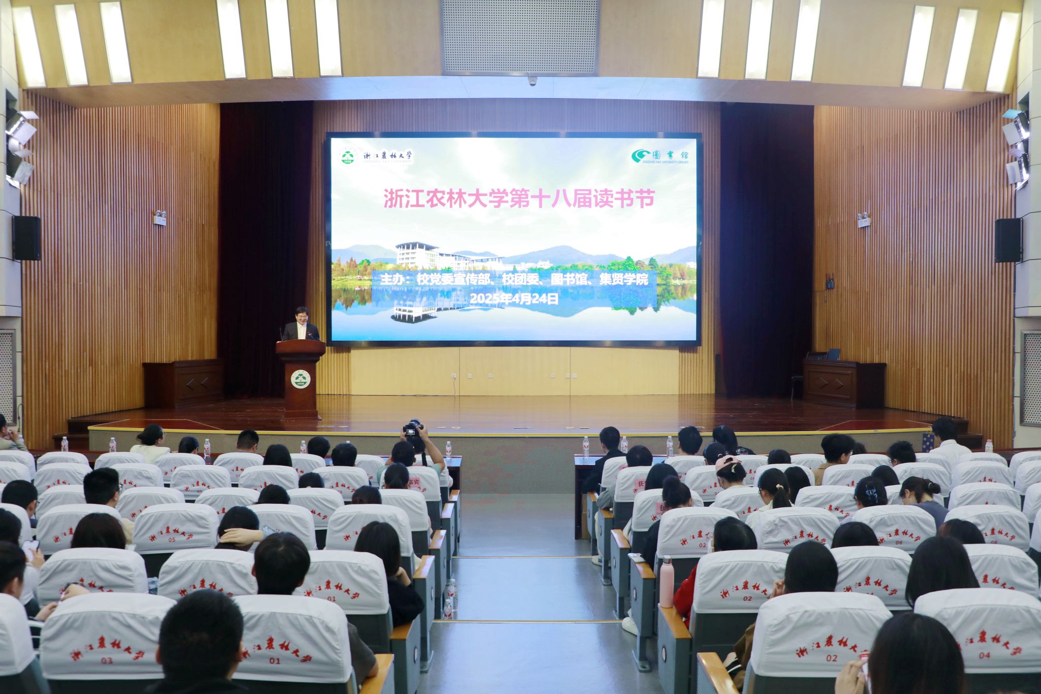 4月24日,學(xué)校第十八屆“讀經(jīng)典、聞書香、潤人生”讀書節(jié)在圖書館第一報(bào)告廳拉開帷幕,副校長徐愛俊出席開幕式并致辭。主辦單位及各學(xué)院師生400余人參加開幕式活動(dòng)。