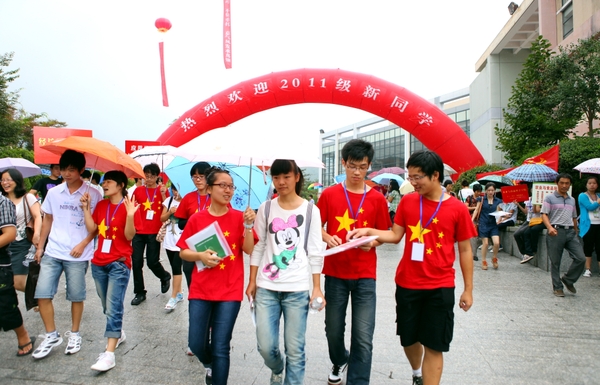 浙農(nóng)林大新聞網(wǎng)訊 金秋九月,美麗的東湖校園再次張開懷抱,迎來祖國(guó)各地的莘莘學(xué)子。9月10日,是我校2011級(jí)新生來校報(bào)到的第一天,數(shù)千名新生背負(fù)行囊,懷揣夢(mèng)想走進(jìn)大學(xué)殿堂,青春的憧憬、幸福的喜悅、濃濃的愛心、歡樂的歌聲,以及一幅幅迎新的場(chǎng)景,構(gòu)成了東湖校園一道亮麗的風(fēng)景線。