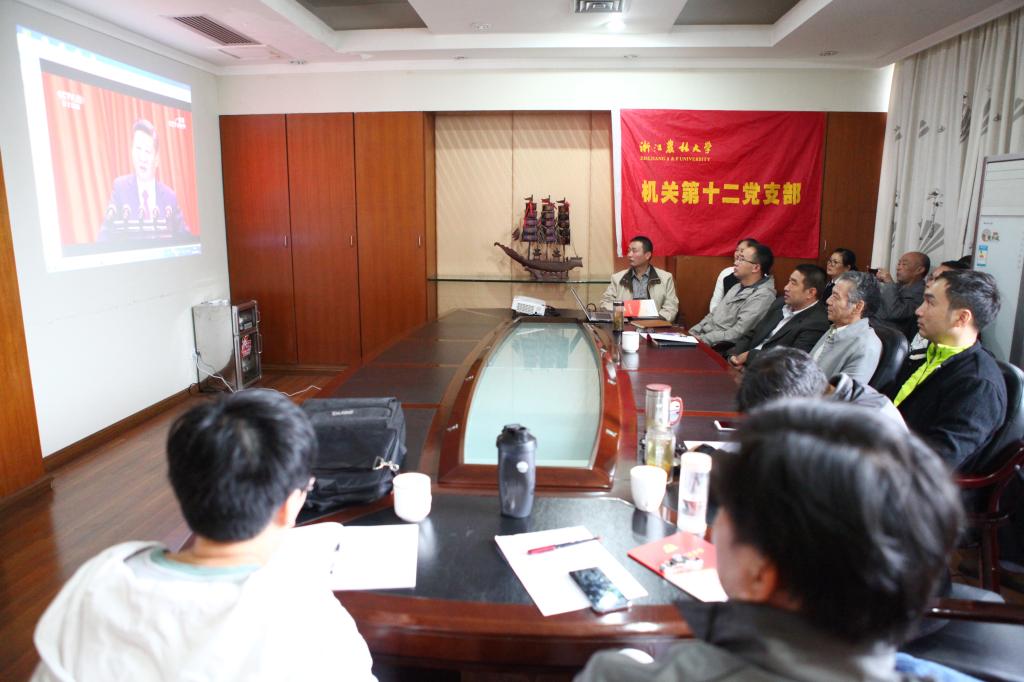 上午9時,校黨委理論學習中心組在行政樓第一會議室集中收看了十九大開幕會。機關有關部門、農學院、工程學院、馬克思學院、信息學院、圖書館、后勤集團等單位專門對收聽收看現場進行了氛圍布置,校團委組織了校院兩級學生干部在活動中心進行集中收看,全國先進基層黨支部——森林培育學科黨支部在國家重點實驗室組織支部黨員集中收看直播實況。此外,廣大師生也紛紛在教室、辦公室、黨員活動室等場所收聽收看。