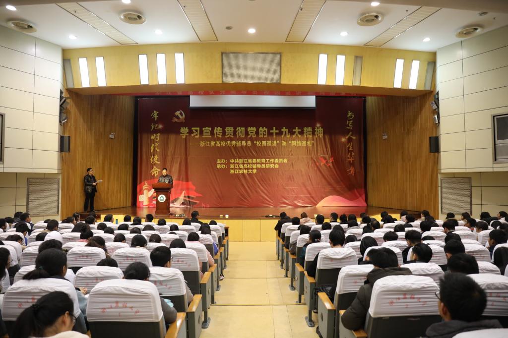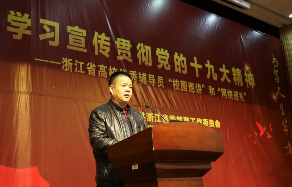 12月14下午,由中共浙江省委教育工作委員會主辦的學習宣傳貫徹黨的十九大精神——浙江省高校優秀輔導員“校園巡講”活動在我校圖書館第一報告廳舉行。校黨委副書記史永安出席活動并講話,校黨委委員、宣傳部長胡祖吉以及學工部、研工部、團委負責人,各學院分管學生工作負責人,全體輔導員和500多名學生代表參加巡講會。