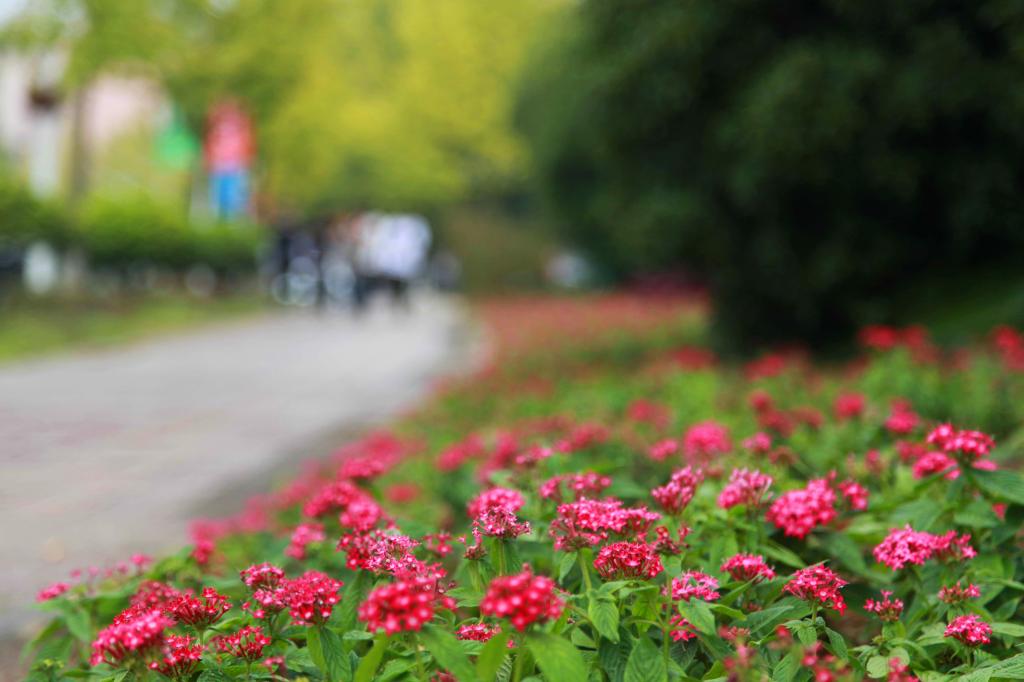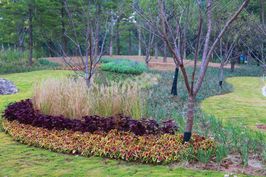 新添的花草鮮活了校園