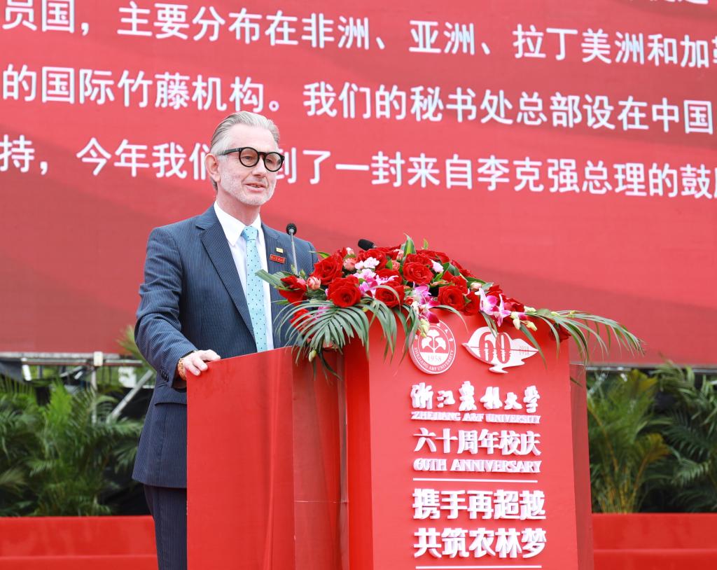 伊利諾伊大學香檳分校副校長及教務長Andreas Cangellaris、國際竹藤組織總干事Hans Friederich分別發言,祝賀學校60華誕,希望繼續深化合作,成為親密伙伴。