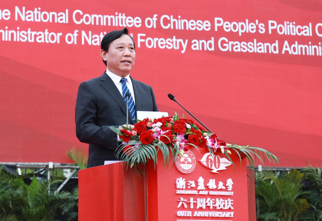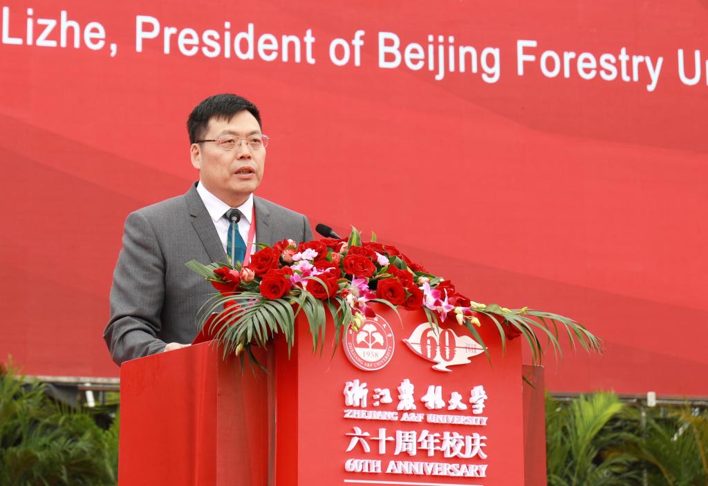 劉東生代表國家林草局向學校全體師生和校友表示熱烈祝賀。他指出,學校成為國家林業和草原局與浙江省人民政府共建高校以來,服務林業建設能力、辦學水平和綜合實力顯著提升,取得一系列重大發展成就。學校具有悠久的辦學歷史和深厚的文化底蘊,是培養高級林業和草原人才的主要院校和林業、草原科技創新的重要基地,在木竹資源開發利用等領域具有明顯的學科優勢,匯聚了大批優秀林業和草原教育人才。國家林草局將繼續發揮省部共建機制的作用,進一步加強對學校的指導和支持,希望學校為建設生態文明和美麗中國做出新的更大的貢獻。