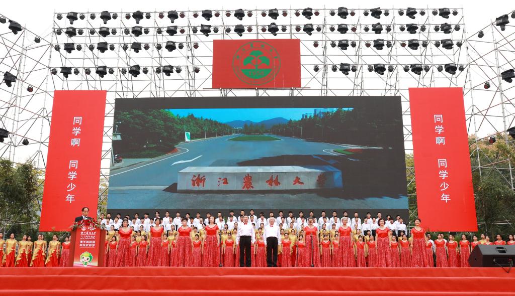 “錢塘澎湃,天目巍然……風華正茂恰少年,華夏棟梁我輩爭先……奮發超越,自強不息天行健。”在雄壯豪邁的校歌聲中,浙江農林大學建校60周年紀念大會圓滿閉幕。