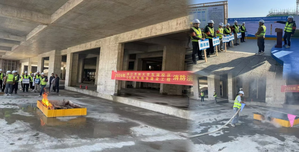會后,D區學生宿舍建設工程進行了消防演練。