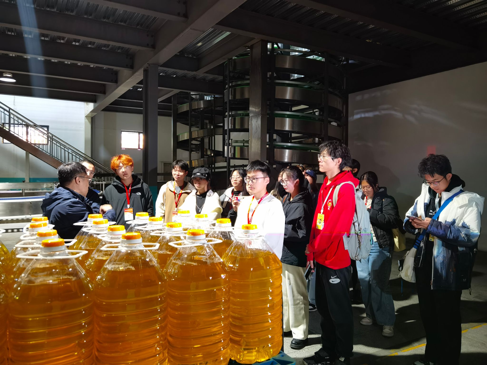 11月30日,后勤中心組織10余名學生代表前往我校食用油和大米定點協議供應商宏盛糧油集團股份有限公司,實地探秘師生所吃的食物來源。