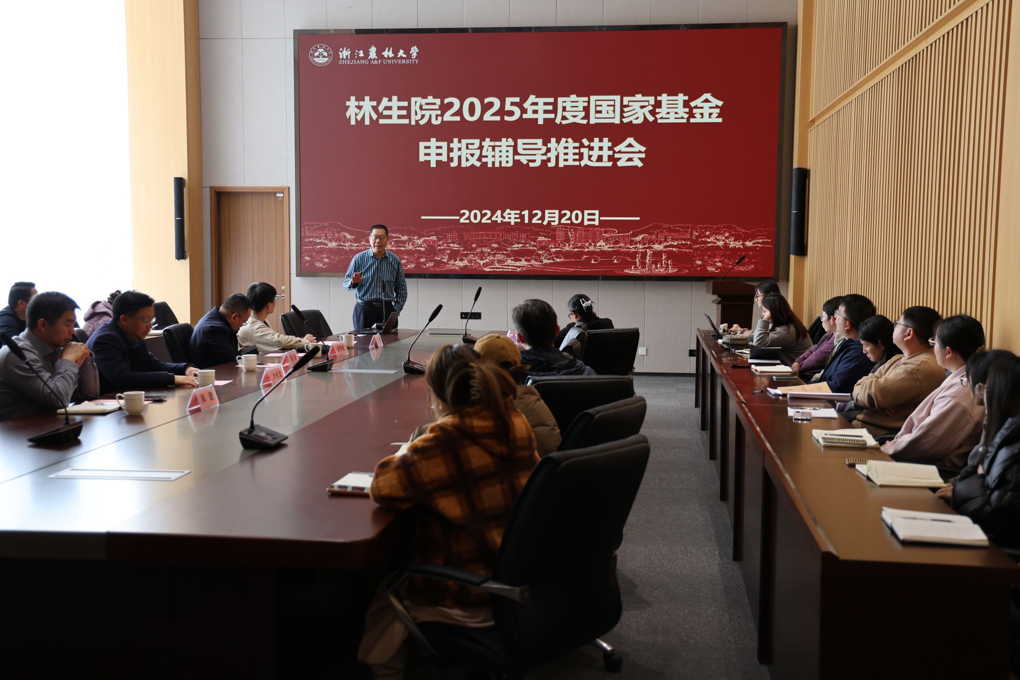 12月20日,林生院舉行2025年度國家自然科學基金申報輔導推進會,會議邀請了環境與資源學院李永夫教授做國自然基金項目申請經驗分享及申報輔導,科技處、林生院相關負責人及2025年度擬申請國家自然基金的老師參加會議。
