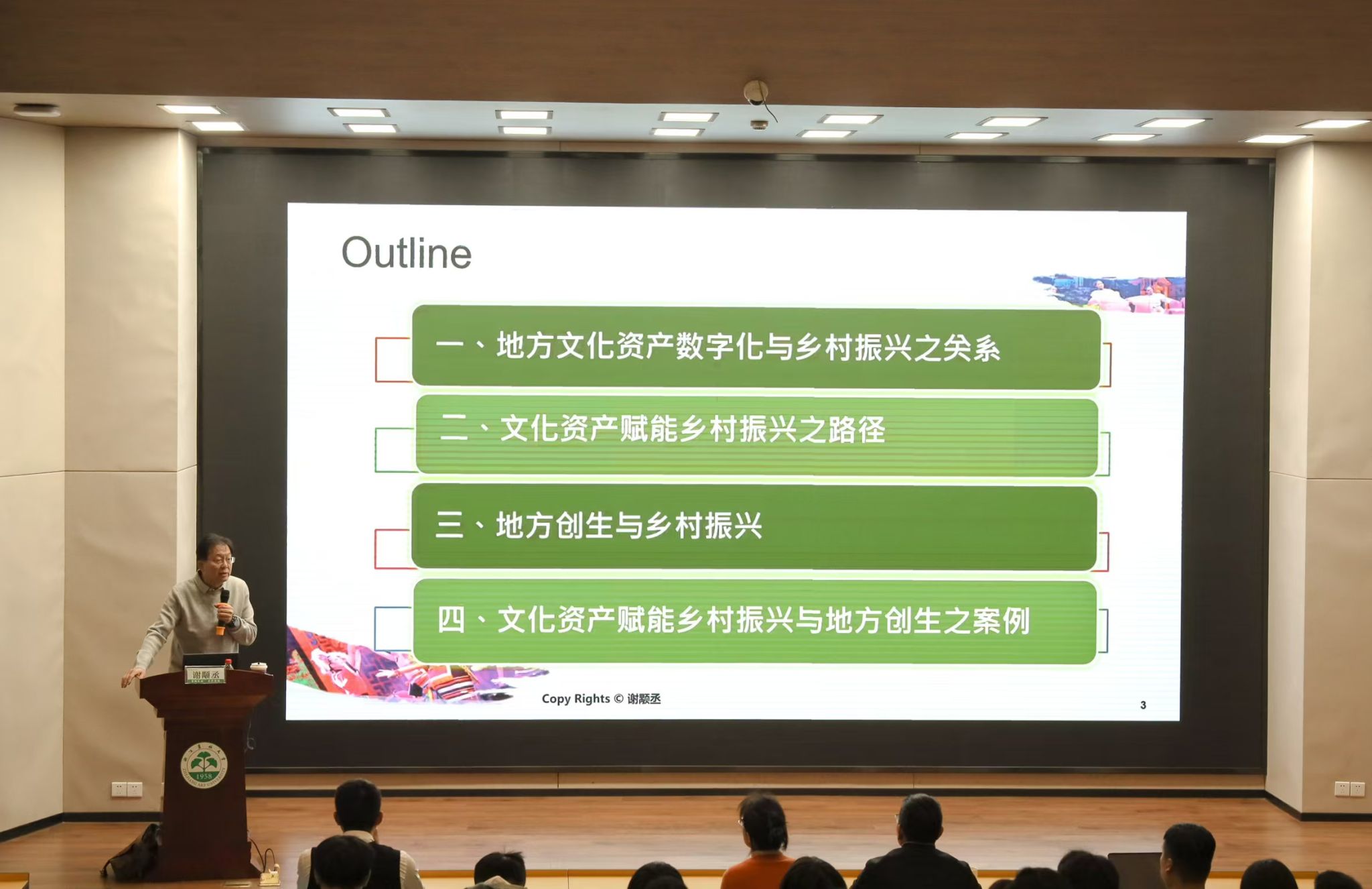 謝颙丞教授在講座中對文化資產在鄉村振興中所扮演的核心角色進行了深刻而全面地解析。他強調,文化是鄉村發展的精髓與靈魂,不僅承載著歷史的記憶,更是推動鄉村未來發展的重要動力。通過深入挖掘、有效整合以及創新性轉化地方的文化資產,可以為鄉村帶來全新的發展機遇,為地方經濟注入鮮活的生命力。