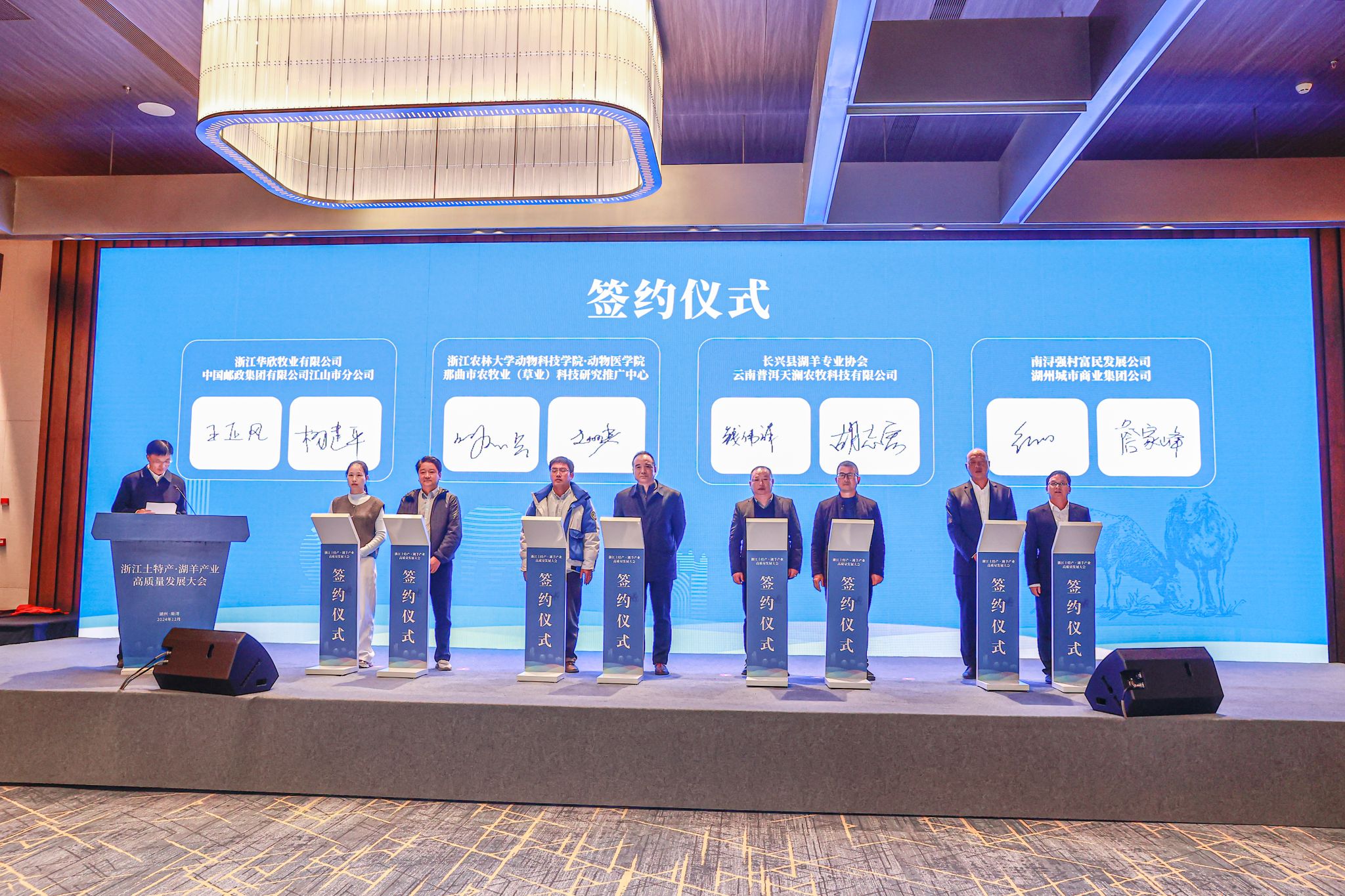 本次大會成立了“10+5”湖羊種業創新工作組,發布了“湖芯一號”50k育種芯片,上線浙江湖羊浙農碼防偽身份證,推介了南潯、長興、桐鄉等地湖羊特色產品,發布了全省10條湖羊美食路線,8家主體進行了合作簽約,介紹10個2025年開工的大投資、全產業鏈項目。