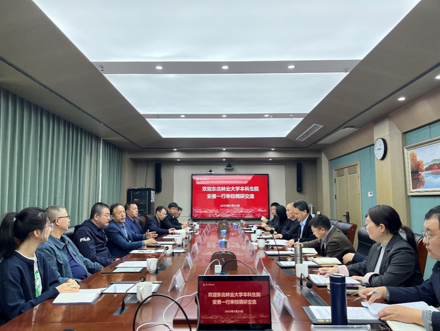 3月24日,東北林業(yè)大學本科生院常務副院長安勇一行來校調研交流。教務處處長郭建忠,學生處、規(guī)劃處、教務處、藝術學院、體軍部、質控中心、后勤中心、團委等部門相關負責人參加座談。