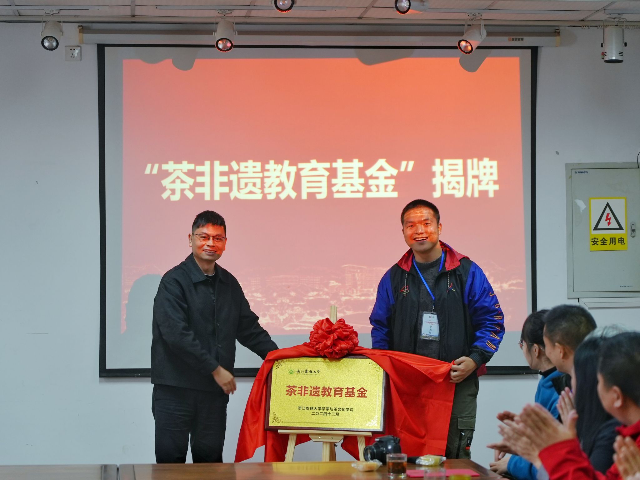 在儀式上,張路和許世錢共同為“茶非遺教育基金”揭牌,該基金的設立將為茶非遺保護傳承、茶非遺專業人才培養注入新的動力。