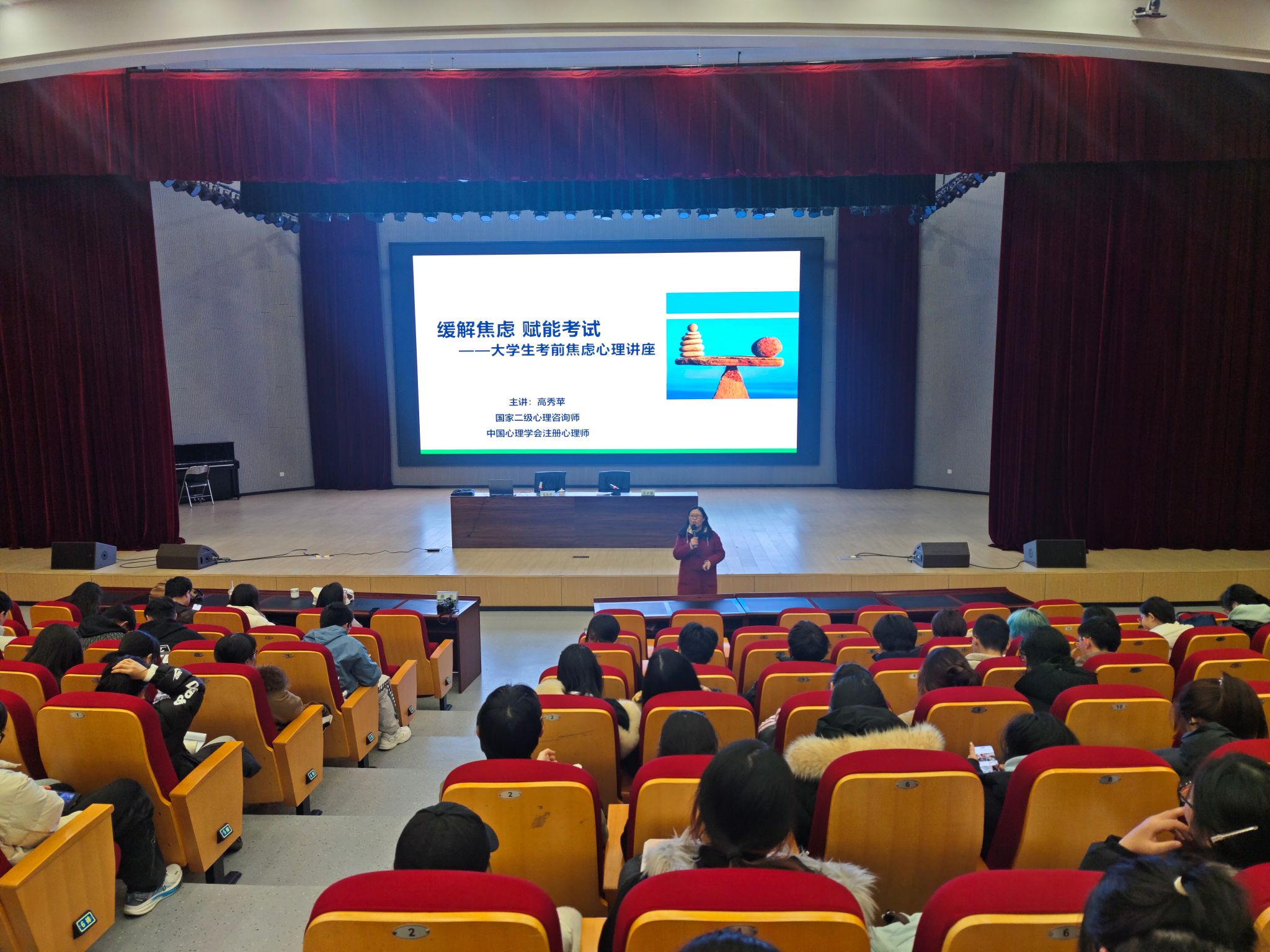 講座內容既有理論深度,又貼近學生實際,引起了在場同學們的強烈共鳴,幫助同學們提升了應對考試的信心和勇氣,掌握了實用的心理調適技巧,為同學們的健康成長和全面發展提供了有力支持。