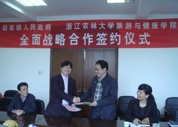 浙農林大新聞網訊 4月21日,園林學院與諸暨市趙家鎮簽訂戰略合作協議,確認利用學院在風景園林、旅游管理、觀賞植物與園藝、城鄉規劃、鄉土建筑等方面的技術優勢為趙家鎮鄉村旅游、村鎮建設、現代農業等領域的發展提供智力支持。這是園林學院第一次以全院學科組合優勢與地方簽訂的全方位合作協議,符合學院學科發展定位在服務基層、服務鄉鎮和新農村建設的總體規劃。