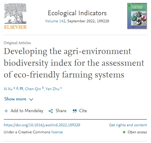近日,我校園林學院風景園林學科徐曦老師以“Developing the Agri-environment Biodiversity Index for the Assessment of Eco-friendly Farming System”發表在環境科學與生態學期刊《Ecological Indicators》(中科院2區,IF=6.263)。該文以生物多樣性為研究對象,探討了衡量生態農場對保護生物多樣性的貢獻的衡量方法,并指出通過景觀管理提高生物多樣性的方法論,是整合環境科學、生態學等基礎學科與園林景觀、農學等應用科學多學科交叉的研究,為多學科參與保護生物多樣性提供了科學方法。我校為該文第一作者單位。