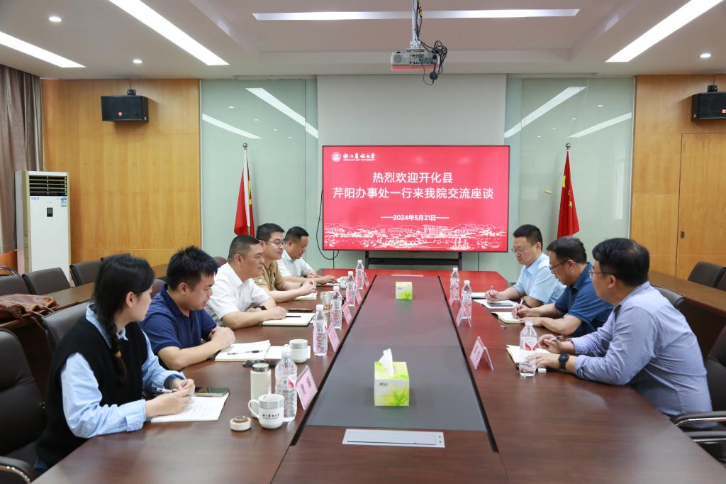 5月21日,開化縣芹陽辦事處黨工委書記鄭凱一行到林生院對接校地合作相關事宜,學院相關領導參加座談會。