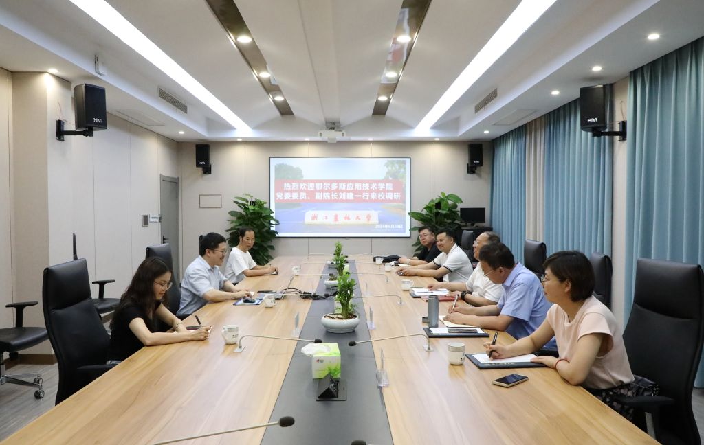 6月28日,鄂爾多斯應用技術學院副院長劉建一行來校調研交流,信息中心主任莫路鋒陪同參觀并主持交流座談會,后勤服務中心相關人員參加。