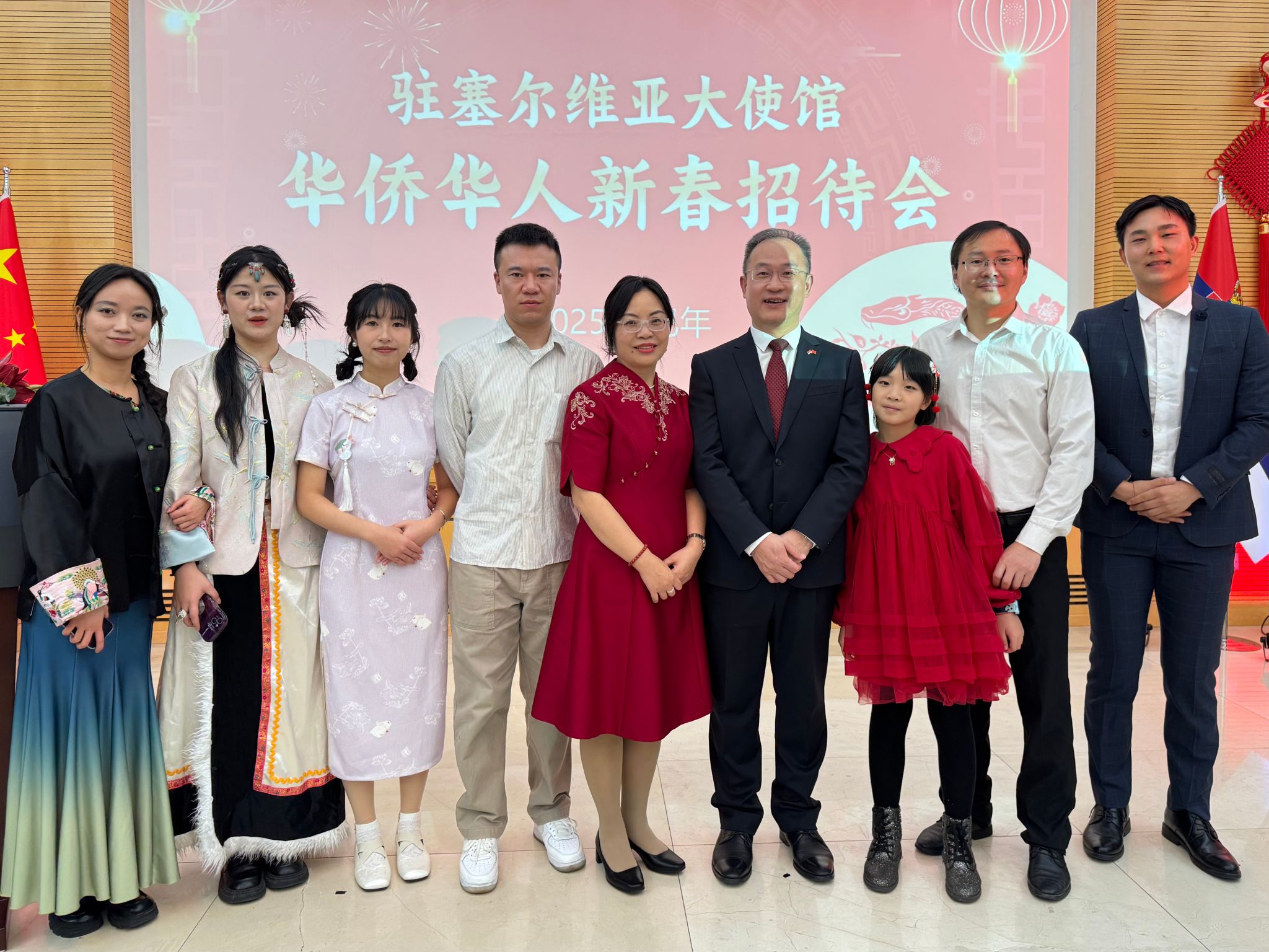 當(dāng)?shù)貢r間1月13日,中國駐塞爾維亞大使館舉辦蛇年華僑華人新春招待會。駐塞大使李明、在塞各中資企業(yè)、各界華僑華人以及諾大孔院教師等近五百人應(yīng)邀出席活動。