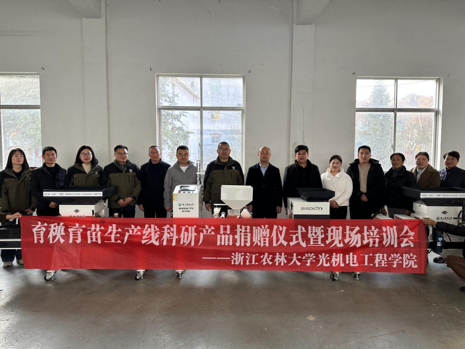 圍繞前期校地合作過程中華埠鎮提出的農業機械化發展瓶頸、農機化項目布局和現代化農事服務中心發展的迫切需要,光機電工程學院智能農林裝備團隊迅速行動,優化調整校地合作點位,聚力服務,向華埠鎮捐贈浙江省“尖兵”“領雁”項目科研成果——育秧育苗流水線一套,并現場開展育秧育苗流水線應用技術的培訓,助力華埠鎮提升育秧機械化水平。